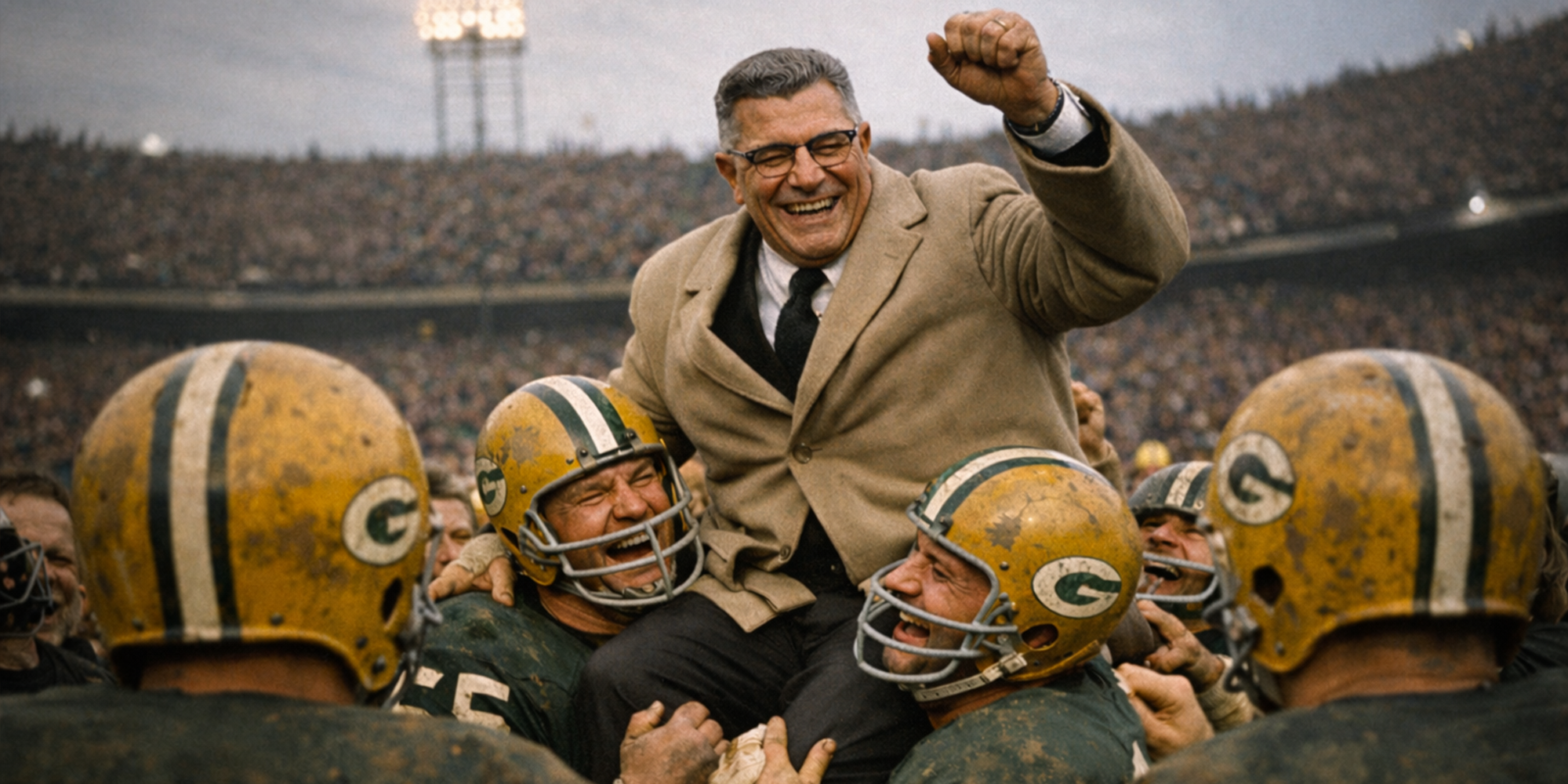 Vince Lombardi (1913–1970), trenerlegende i amerikansk fotball. Bildet er en KI-generert illustrasjon og ikke et dokumentarisk fotografi.